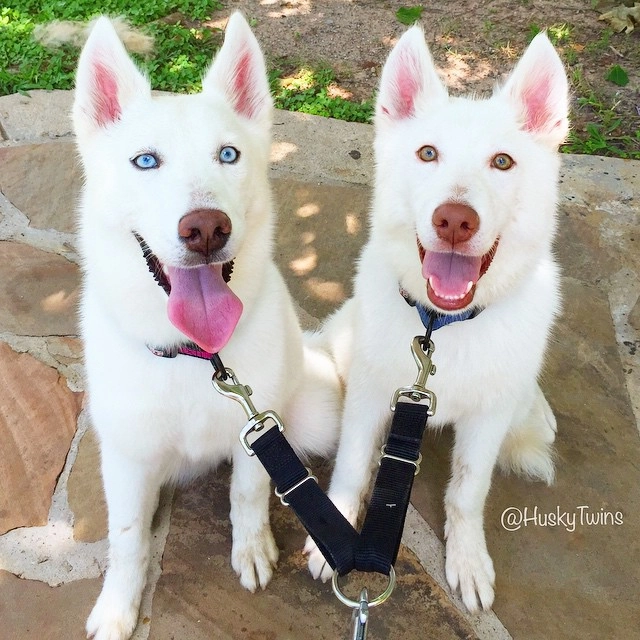 1. Белоснежные близнецы хаски с разного цвета глазами
