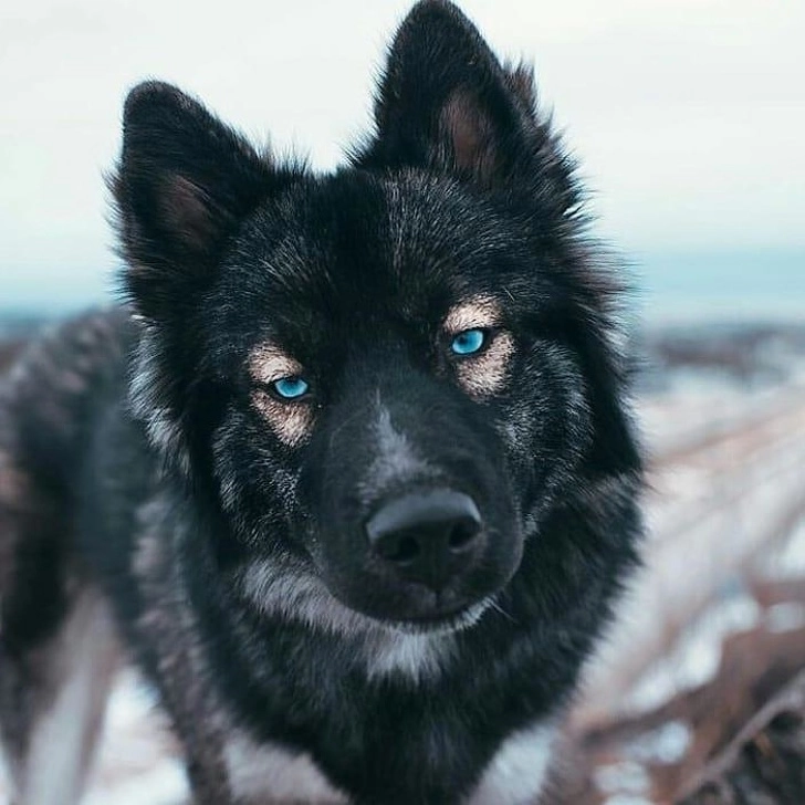 19. Чёрная хаски Джои (Joey) с пронзительными голубыми глазами