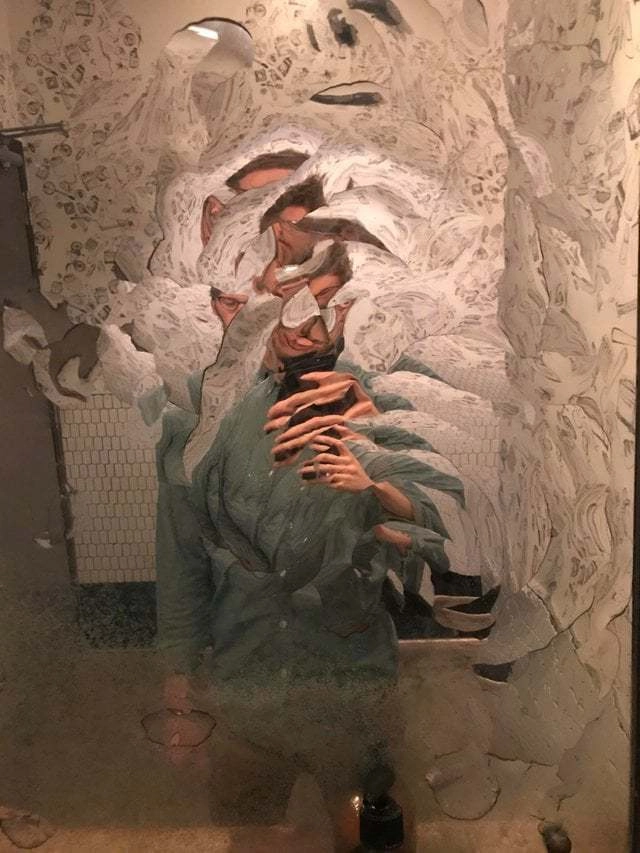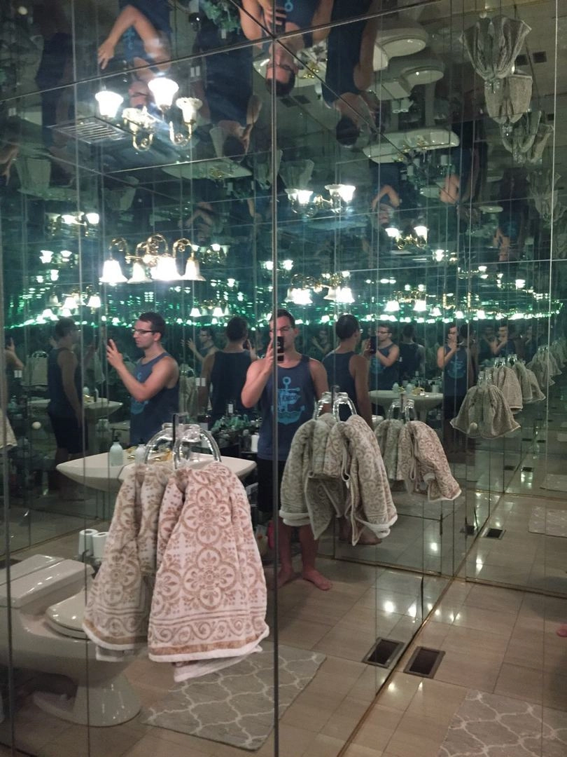 3. «Стены в ванной комнате моей девушки полностью зеркальные»