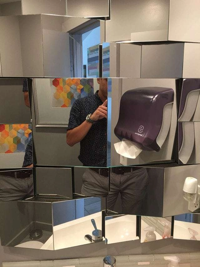 Фото в зеркале давно стало неотъемлемой частью нашей жизни. Но иногда встречаются такие зеркала, в которых селфи сделать очень сложно. А если это и удастся провернуть, результат окажется таким смешным и нелепым, что страшно смотреть. Собрали для вас снимки людей, которые хотели сфотографироваться, но зеркала над ними подшутили, создав любопытные оптические иллюзии.