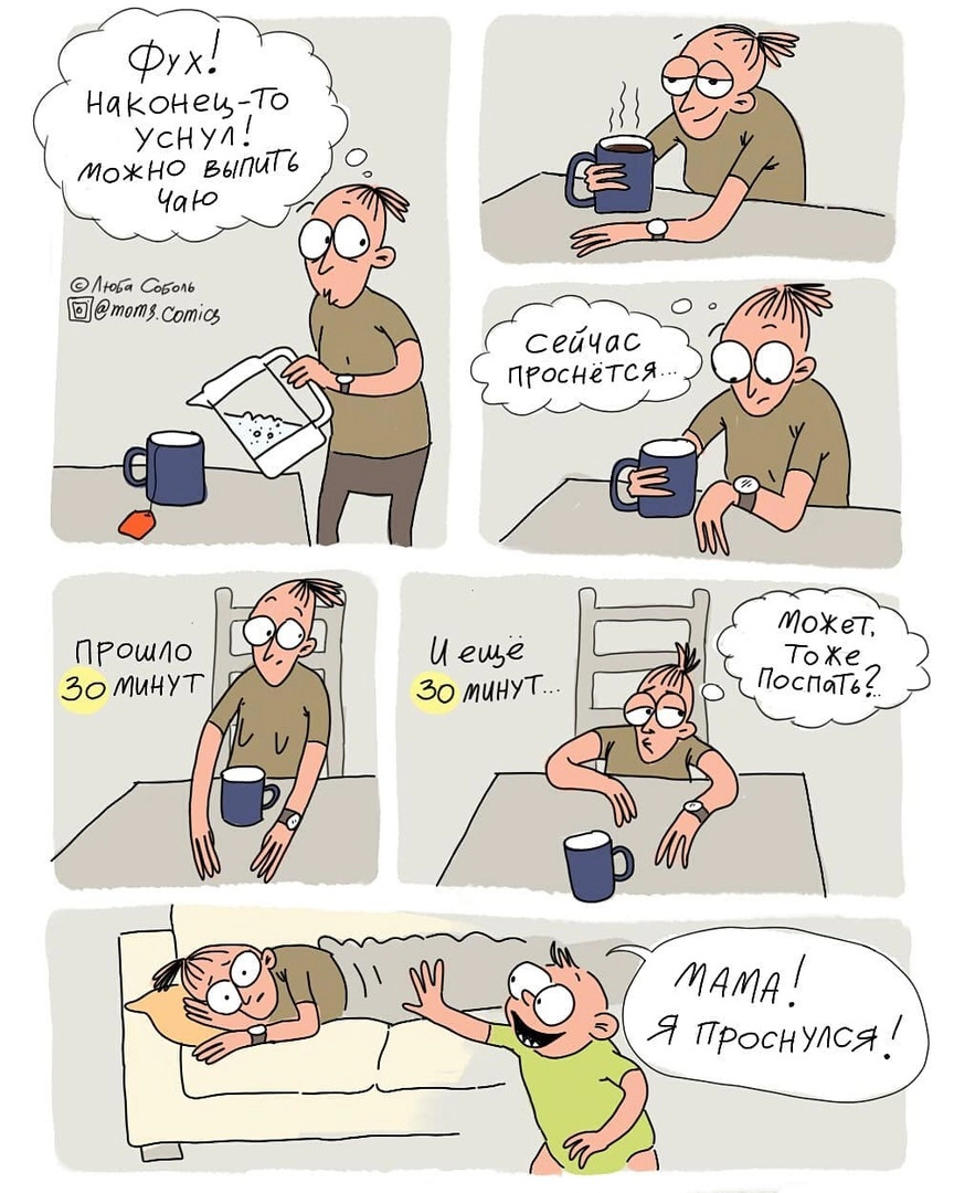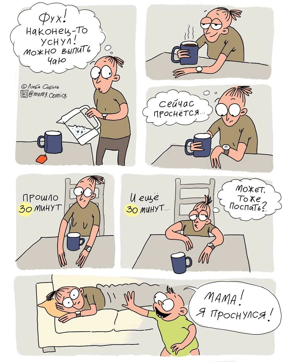 Отношения детей и родителей — неисчерпаемая тема, которая всегда будет волновать людей по всему свету. Те, у кого уже есть дети, со смешанным чувствами смотрят на тех, кто только мечтает ими обзавестись. Ведь ожидания часто разительно отличаются от реальности. Когда художница Люба Соболь. родила мальчика Лёву, то чтобы не сойти с ума в декрете, начала рисовать забавные комиксы о жизни с ребёнком. И в этих весёлых историях каждый родитель узнает себя.