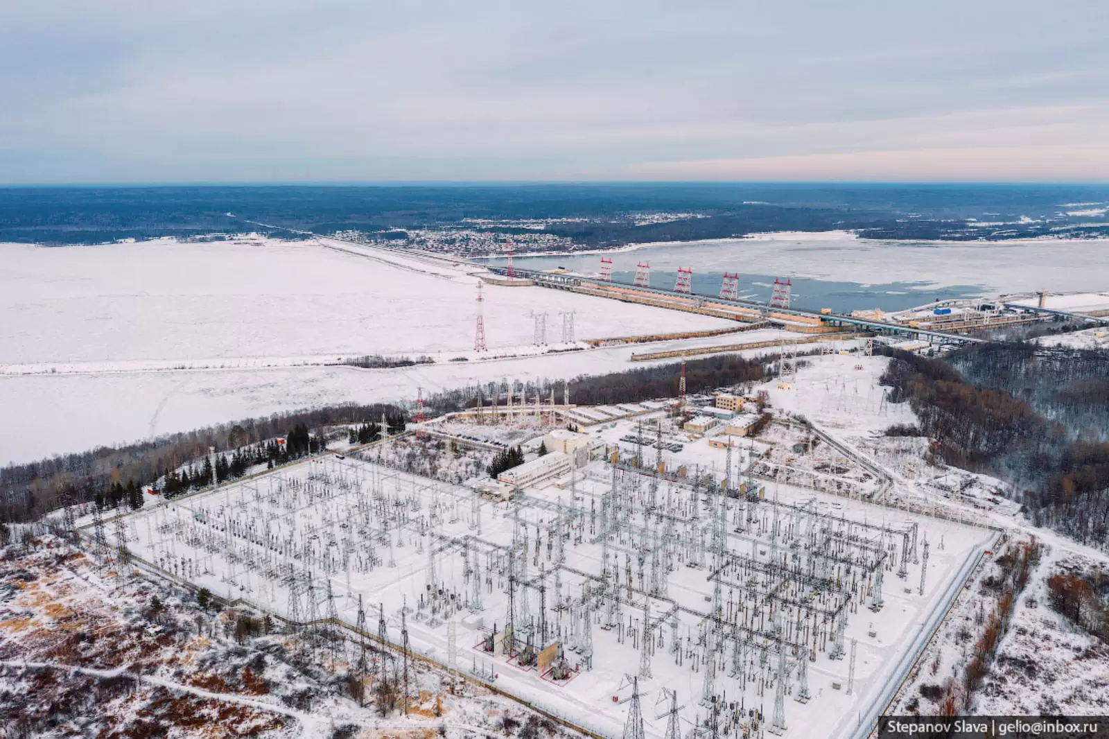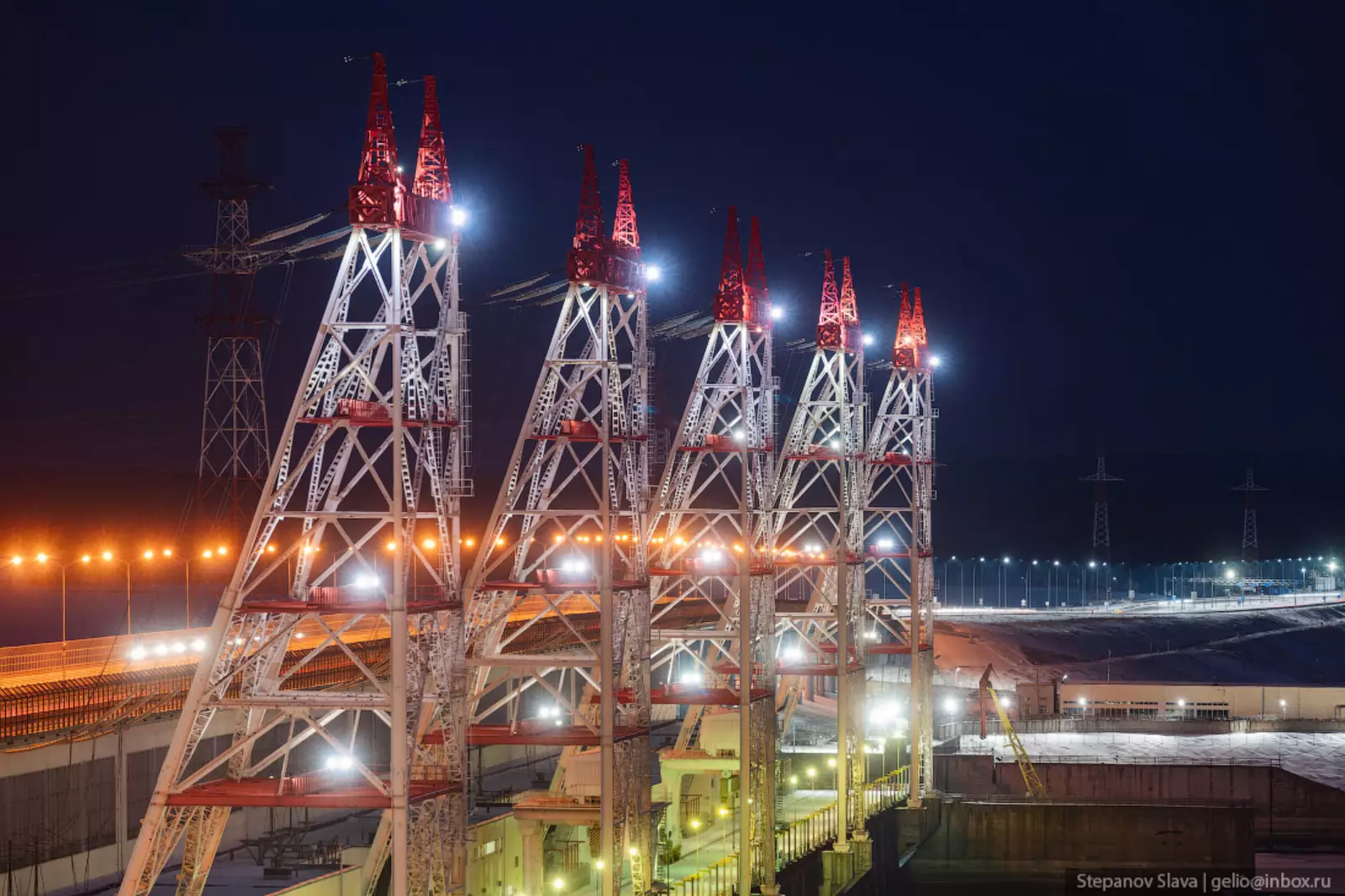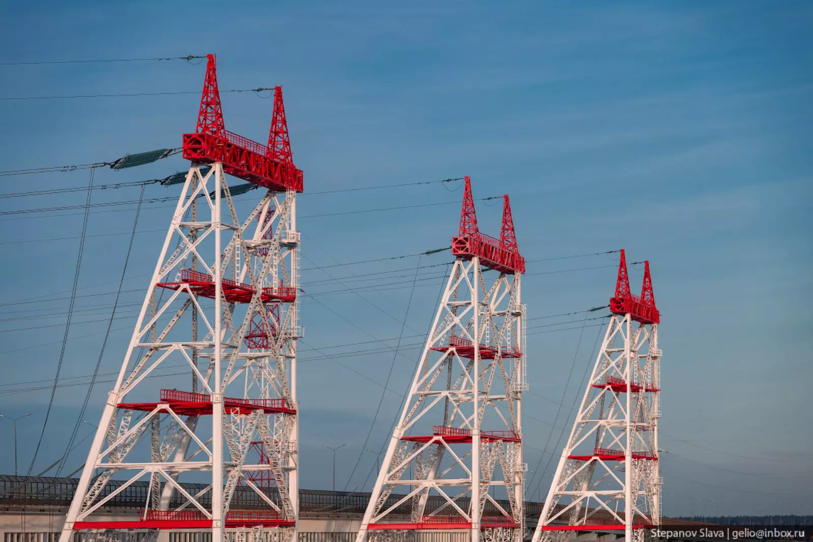 3. На ГЭС установлено 5 опор ЛЭП, по которым электроэнергия идет на ОРУ — открытое распределительное устройство. Высота каждой опоры 75 метров — примерно 25 этажей.