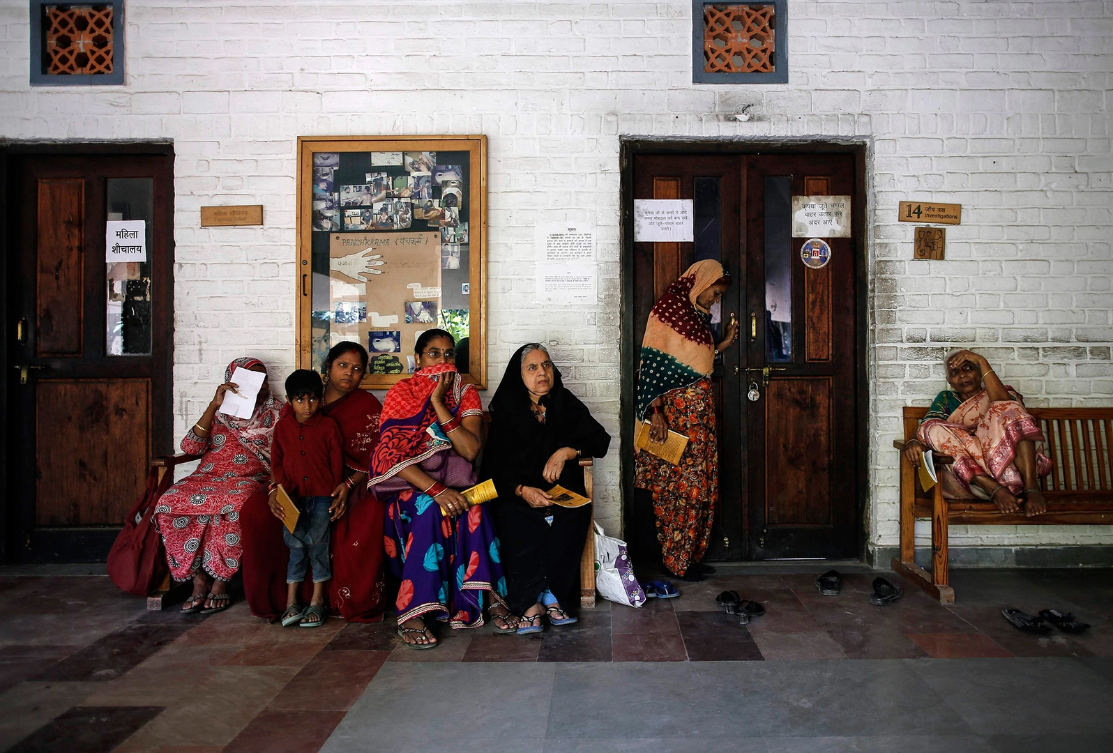 Люди ожидают лечебных процедур в очереди в больнице для пострадавших от выброса цианида в 1984 году.