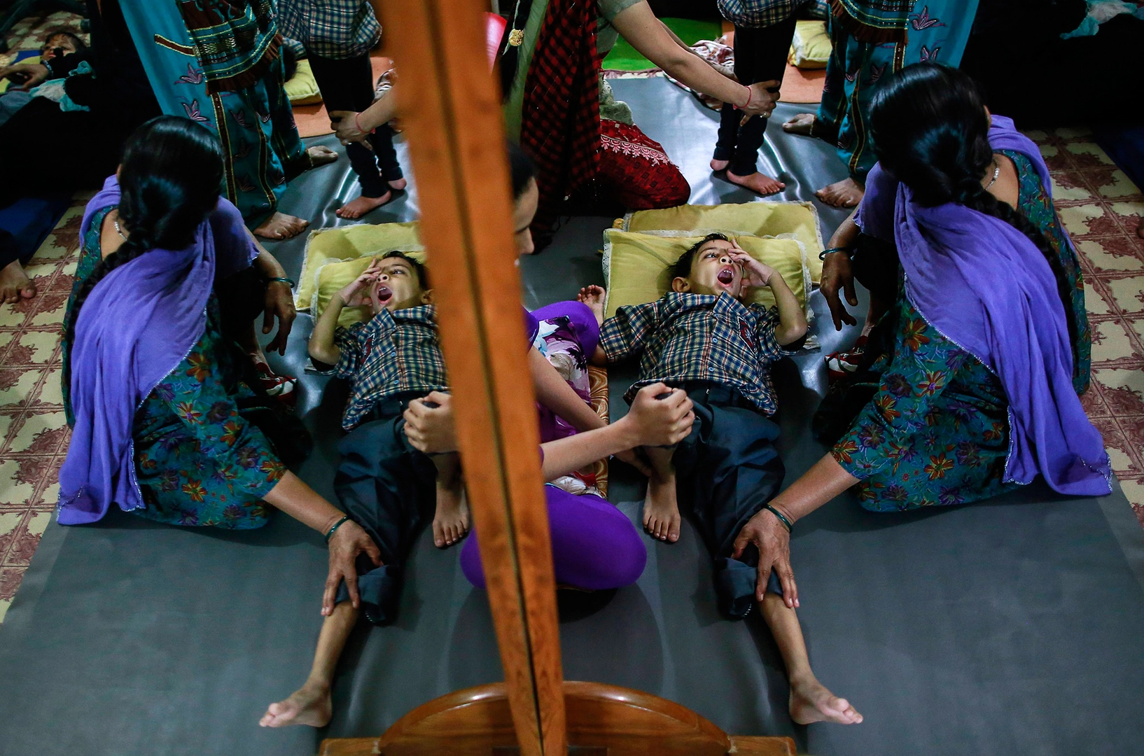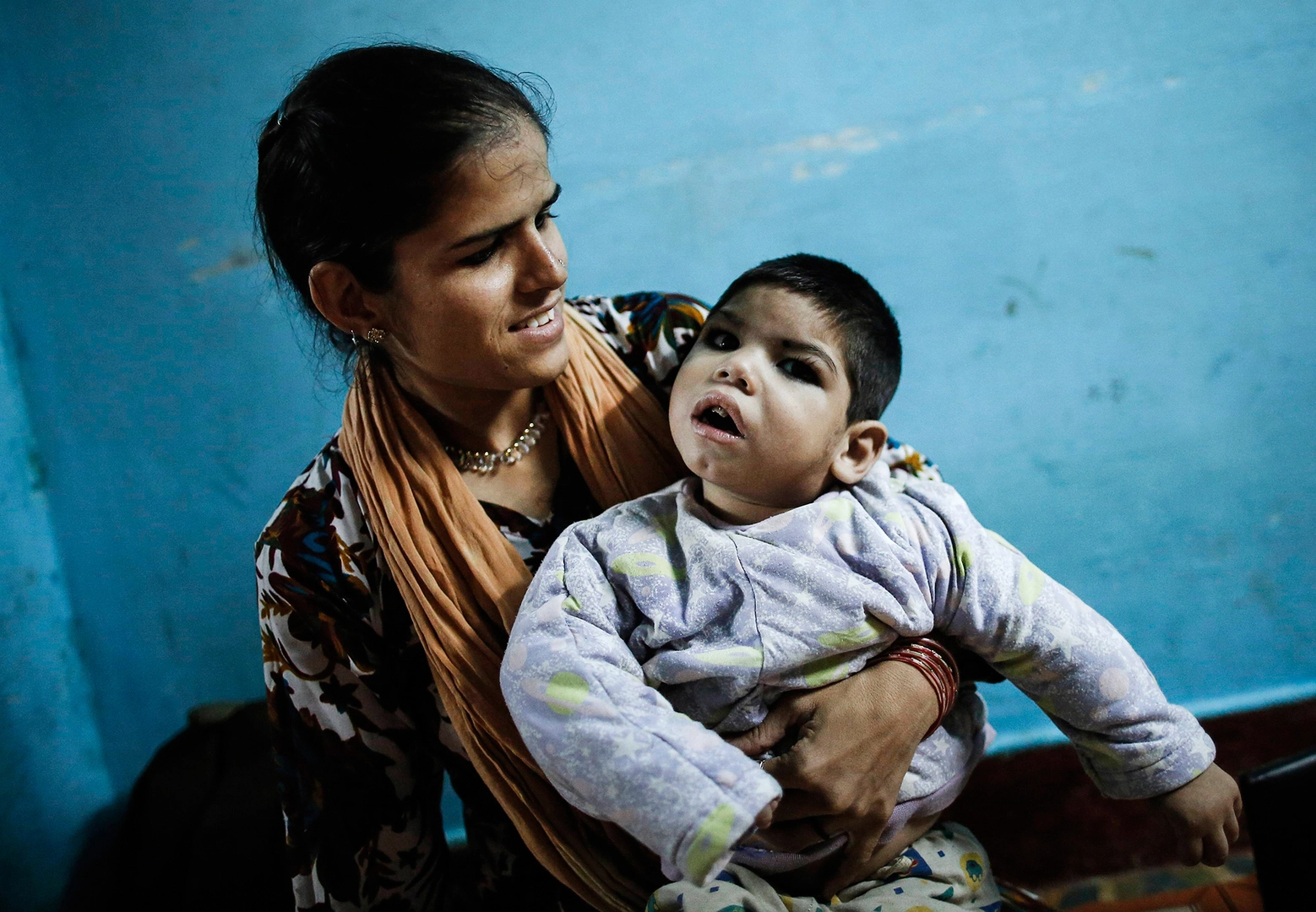 Пятилетний Сагар, страдающий умственной и физической отсталостью.