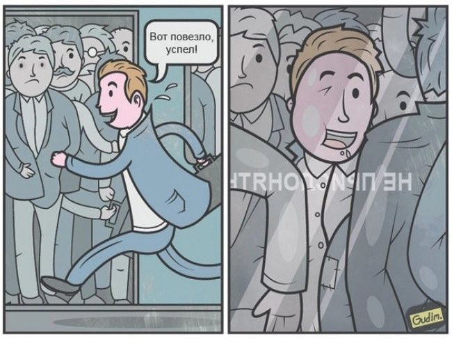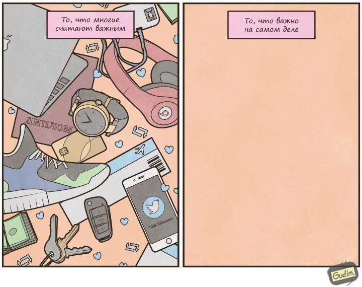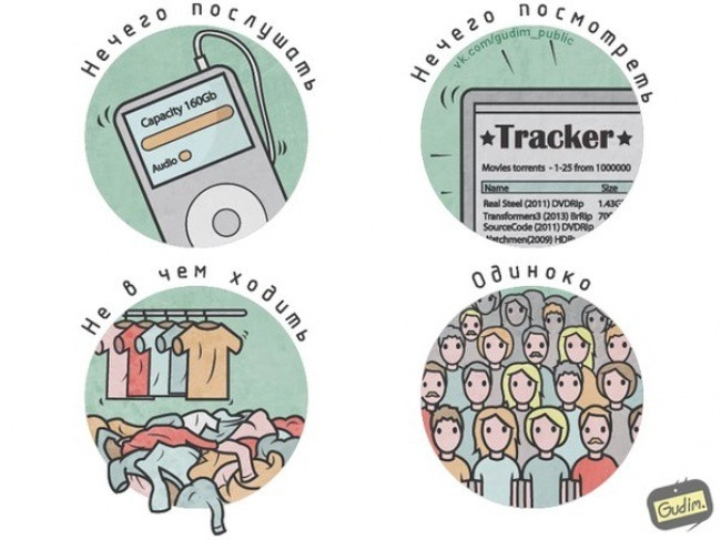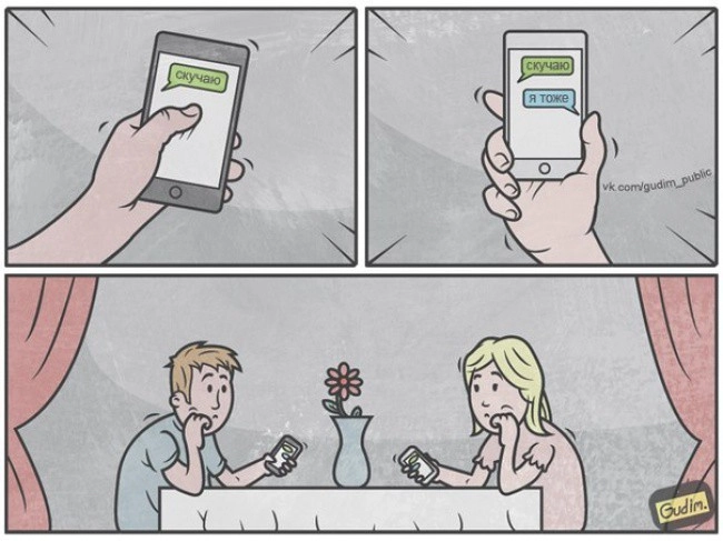Эти картинки о том, как смартфоны захватили нашу жизнь, о забавных ситуациях, с которыми мы сталкиваемся каждый день, о зависимости от мнения окружающих, об одиночестве в толпе и о том, как незаметно мы становимся рабами моды. Московский иллюстратор Антон Гудим в своих иллюстрациях показывает жизнь такой, какой видит её вокруг себя. У талантливого художника более 100 тысяч подписчиков Вконтакте и 40 тысяч — в Инстаграм. Собрали для вас самые ироничные, парадоксальные, немного странные и очень правдивые работы Антона.
