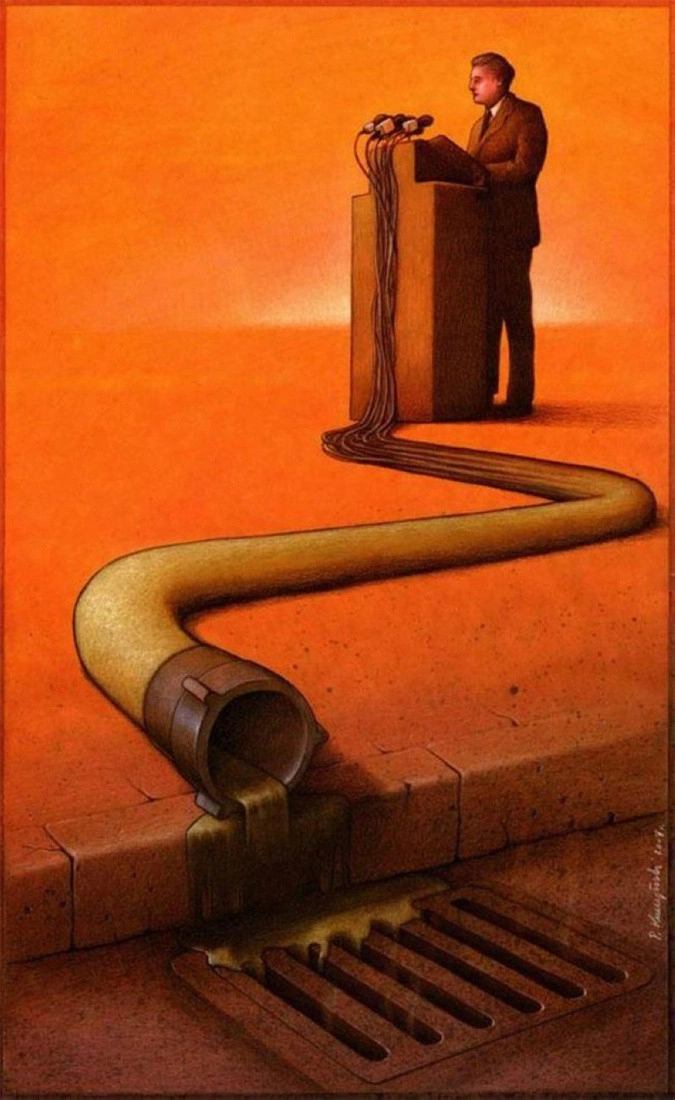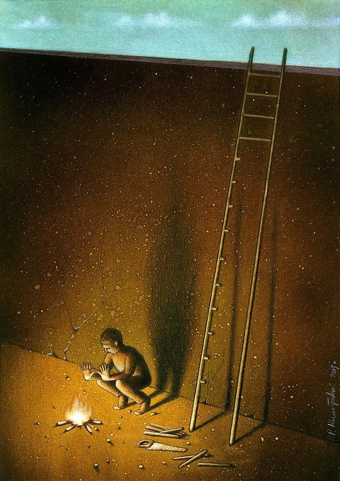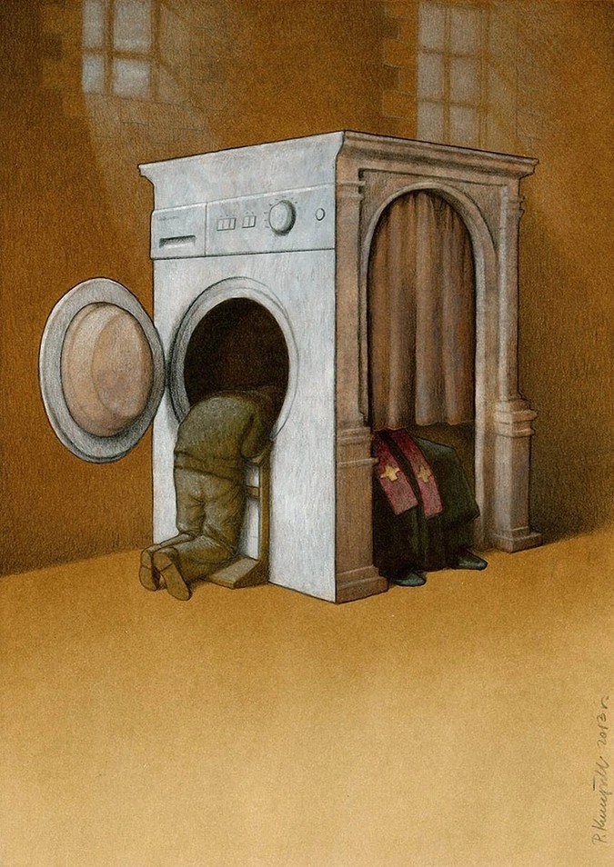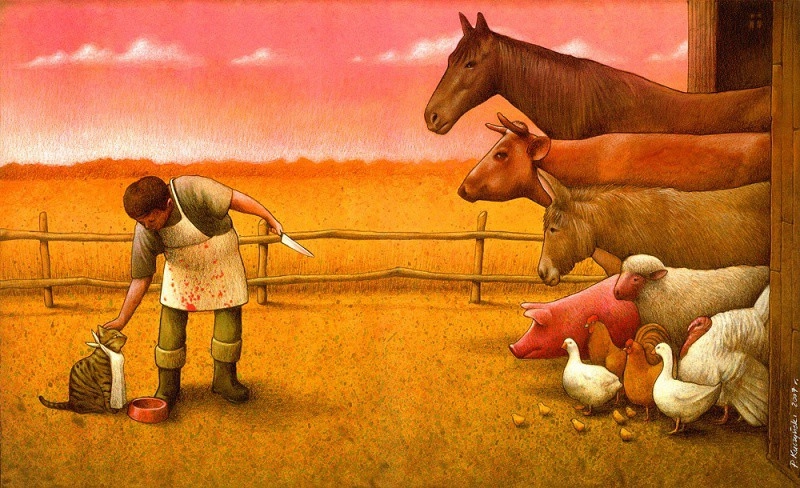 Кто такой человек? Что такое общество? Зачем мы на Земле? Куда мы идём? Эти и другие неудобные остросоциальные вопросы задаёт в своих иллюстрациях талантливый польский художник Павел Кучински. Его картины — сюрреалистические и откровенные карикатуры, которые показывают наш мир без прикрас.