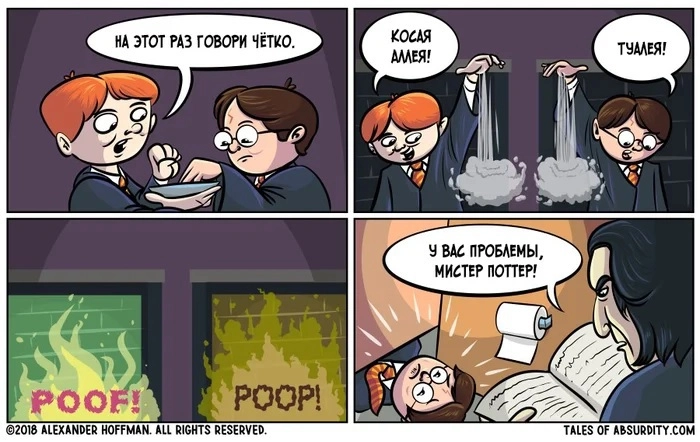 Алекс Хоффман выкладывает комиксы на своей страницы в Twitter. А переводом его работ на русский язык занимается канал Absolut Comics.