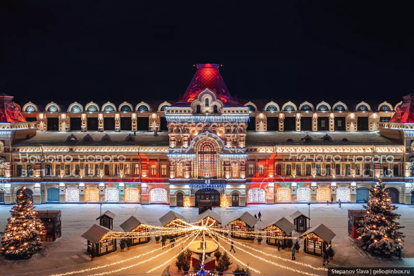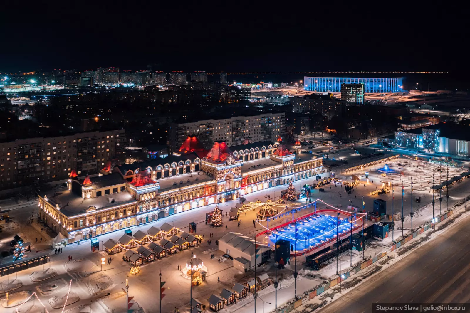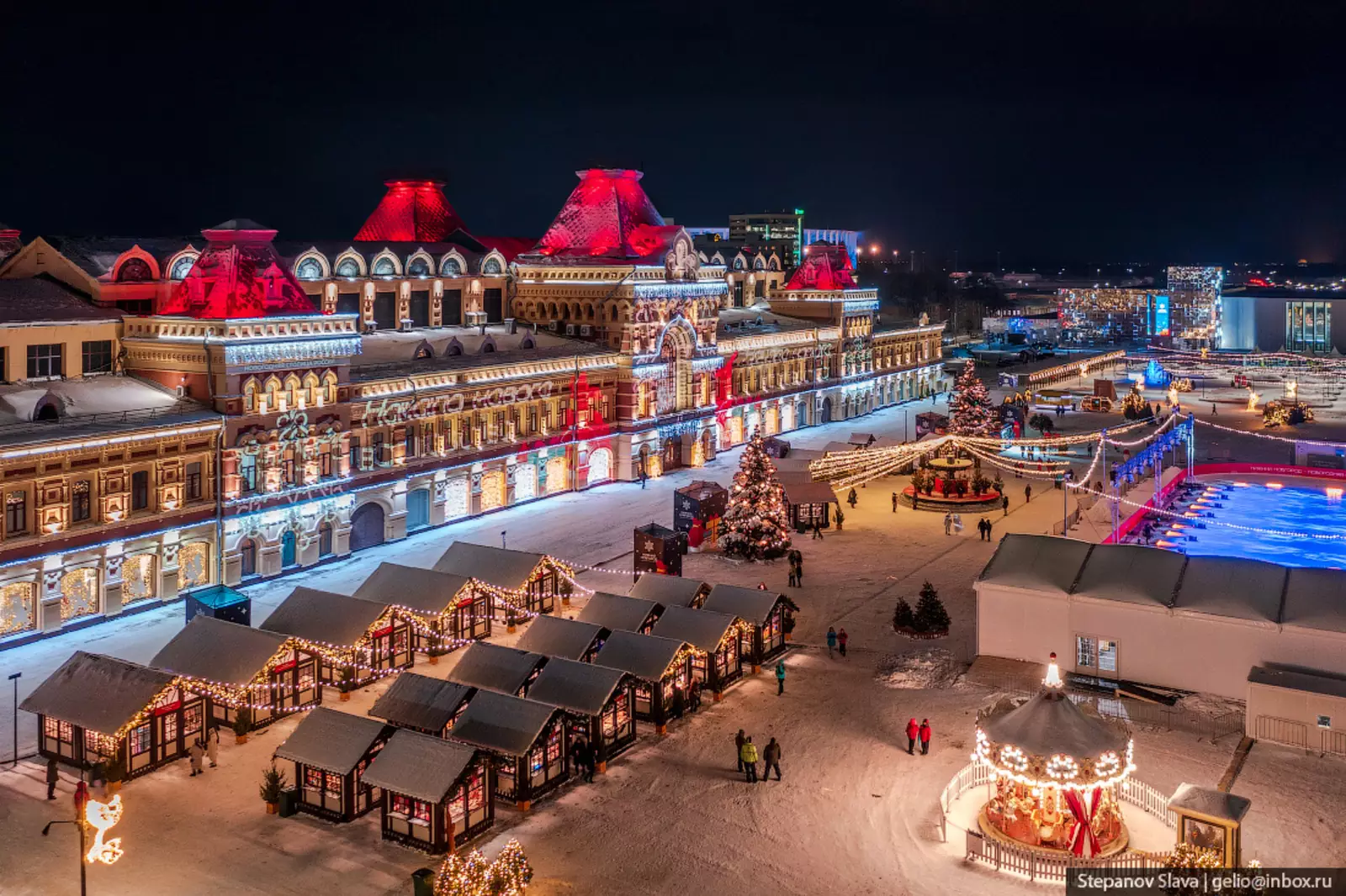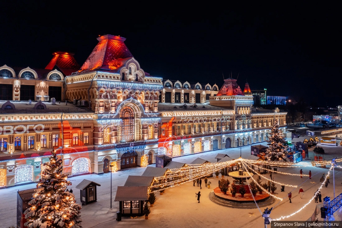 Нижегородская ярмарка — главная площадка проведения праздника. Здесь работает каток, карусель, фуд-корт, новогодняя ярмарка, артисты в необычных костюмах. А еще, в этом знаковом для города месте расположилась Резиденция Деда Мороза.