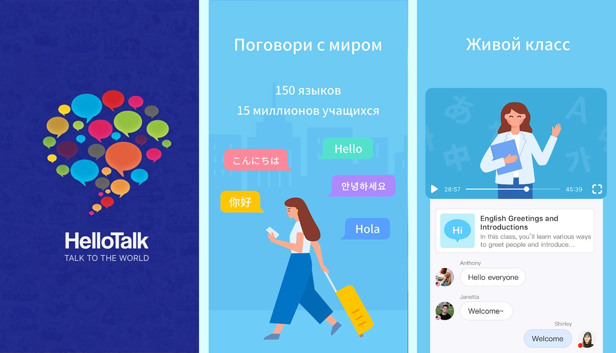 Платформа и приложение для общения с носителями языка со всего мира. Общаться можно на любом языке и с кем угодно, объединяться в группы или говорить с одним человеком. Hello talk позволяет отправлять голосовые и текстовые сообщения, звонить по видеосвязи. Таким образом, вы можете практиковать письменную и устную речь, развивать навыки чтения и аудирования. При этом никто не ограничивает тематику общения, и вы сами можете выбрать собеседника. Также у приложения есть встроенные инструменты для облегчения процесса обучения — произношение, транслитерация и перевод.