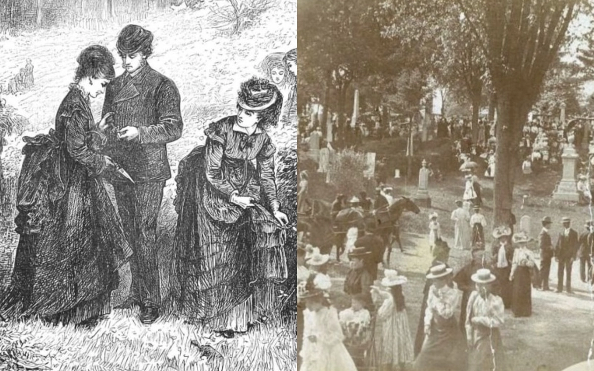 Пожалуй, кладбище — это последнее место, где современному человеку захотелось бы устроить пикник. Однако жители США в начале 30-х годов XIX века с удовольствием приходили на кладбище, чтобы посидеть там с друзьями (живыми), а потом поехать на охоту или устроить подвижные игры прямо среди надгробий. В конце концов кладбища стали настолько посещаемыми, что некоторые из них даже включили в путеводители для туристов.