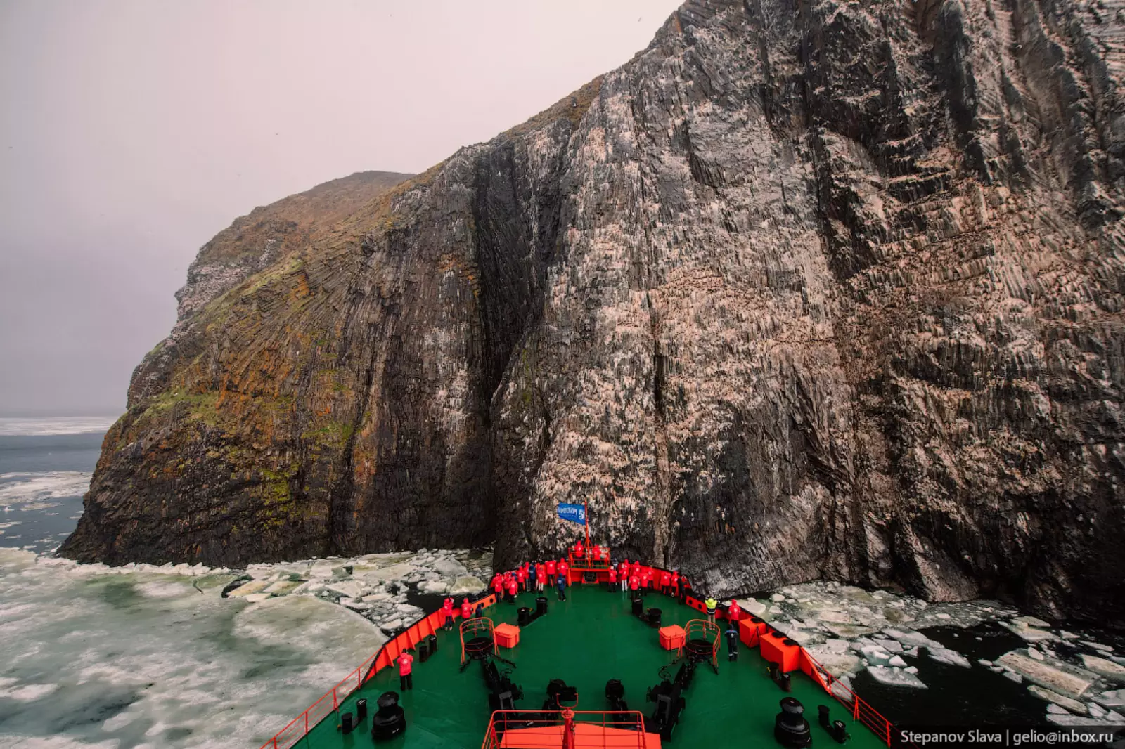50. Мыс Флигели. Это самая северная островная точка России. Дальше только льды и Северный Ледовитый океан. До Северного полюса отсюда 900 км.