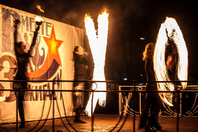 Перед запуском шариков и фонариков на сцене выступили артисты с файер-шоу. Первичных средств пожаротушения, как и обязательного в случае проведения культурно-массовых мероприятий расчёта пожарной охраны, поблизости замечено не было. Равно как и экипажа скорой помощи.