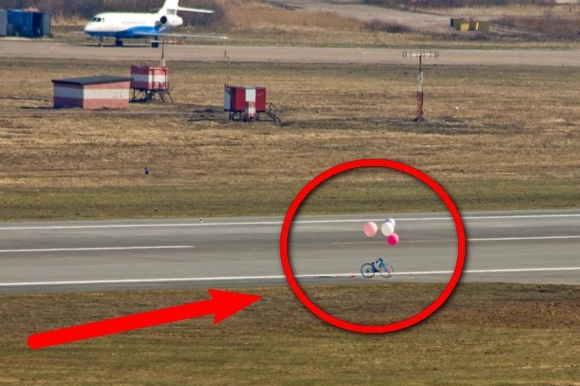 Несколько лет назад подобный запуск шаров на массовом мероприятии закончился удивительным образом, по счастью, безаварийно для авиаторов. Велосипед из воздушных шариков, запущенный в 23 километрах севернее аэропорта, успешно совершил приземление на обочину ВПП Пулково.