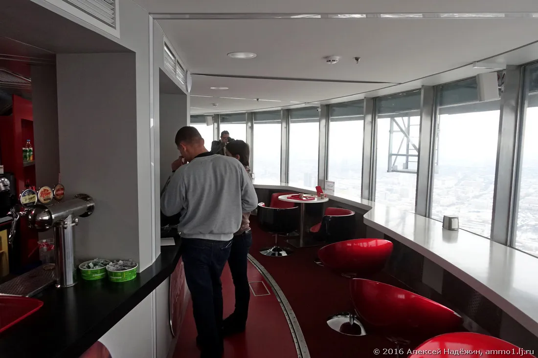 Ниже обзорных площадок на трёх этажах располагаются кафетерий, кафе и ресторан.