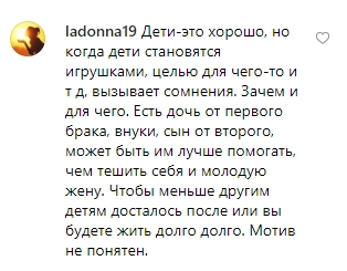 Большинство подписчиков выразили свои искренние поздравления, однако нашлись и скептики, которые усомнились в целесообразности отцовства в таком преклонном возрасте.