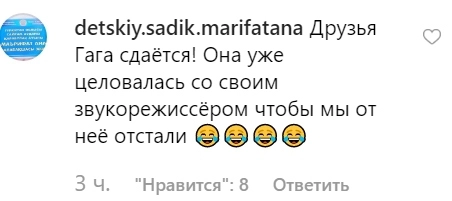Эта публикация породила новую волну шуток со стороны российских пользователей Сети. Некоторые начали писать про «бумеранг», а другие предположили, что Гага с помощью нового романа пытается утихомирить российских комментаторов.