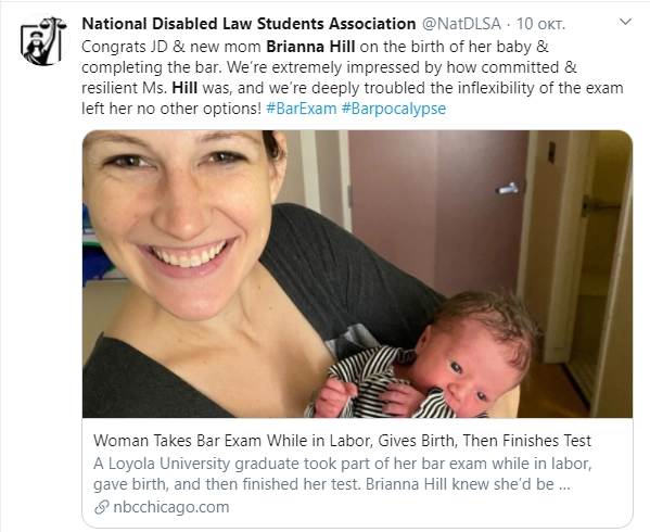 Американка родила сына во время вступительных экзаменов в коллегию адвокатов. Девушка понимала, что экзамены ей придется сдавать, будучи беременной, но она надеялась сделать это на более раннем сроке. Однако из-за пандемии COVID-19 даты были перенесены.