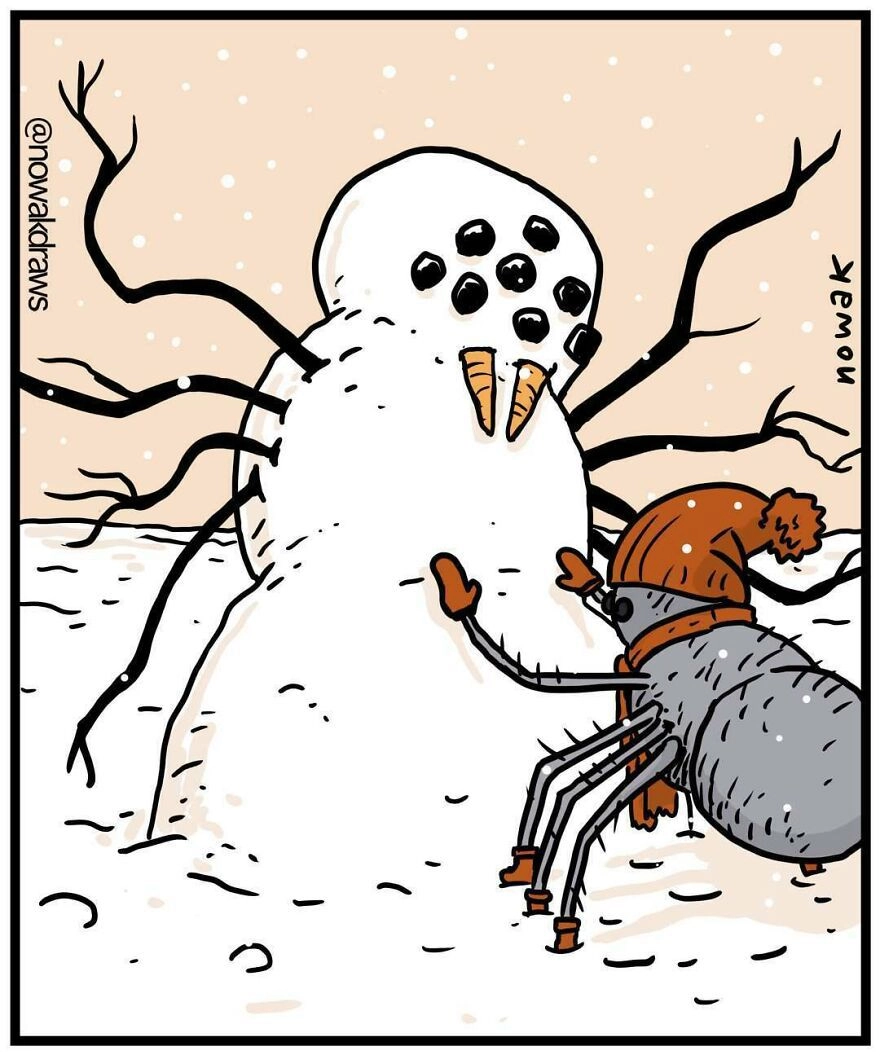 Самая интересная особенность работ канадца заключается в том, что невозможно предугадать, о чем будет его следующий комикс: в абсурдной параллельной вселенной Джозефа возможно абсолютно все. Начиная с банана, поскальзывающегося на человеке, и заканчивая повседневными проблемами сороконожки — собрали для вас лучшие иллюстрации Новака.