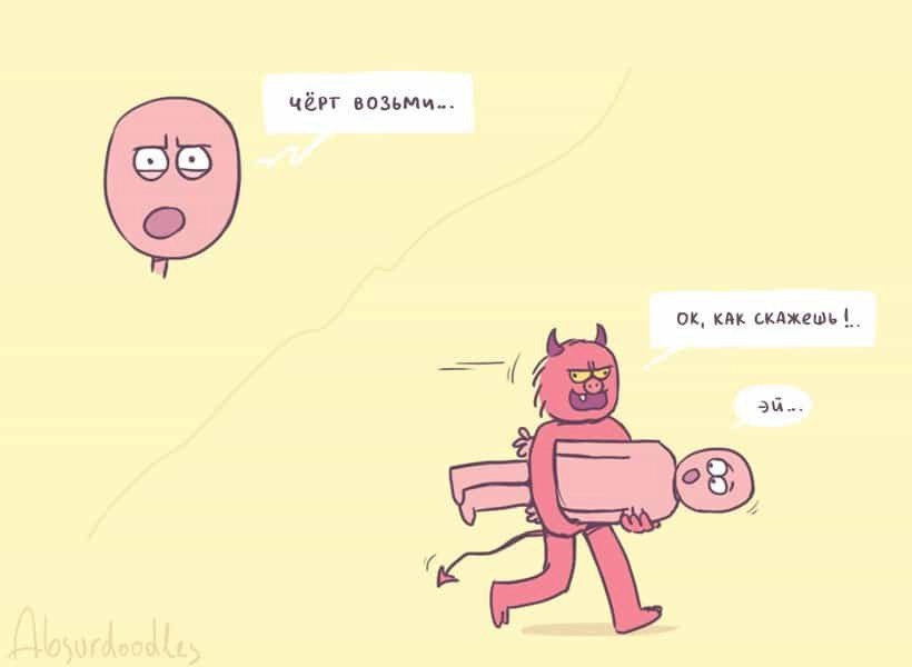 Художник паблика Absurdoodles рисует юмористические комиксы, в которых показывает слова и популярные фразы буквально. Юмор на грани абсурда, игра слов и неожиданный взгляд на будничные вещи делают эти рисунки ироничными и актуальными. Творчество автора по достоинству оценило множество подписчиков. Сделали для вас подборку свежих комиксов-каламбуров, поднимающих настроение.