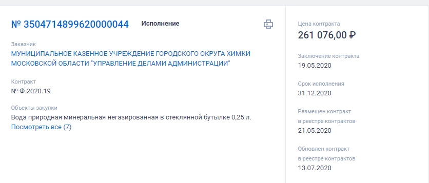 Администрация Химок закупает элитную минералку при дефиците бюджета