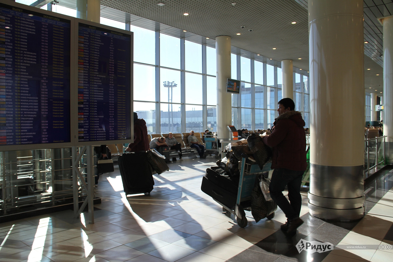 Зал прибытия — бросая сумки на пол и игнорируя назойливых таксистов, обнимаются после долгой разлуки близкие люди. В соседнем отсеке кто-то кого-то провожает. В зале ожидания спокойнее — на полу у стены болтают подружки-иностранки, пересадка, ждать долго…