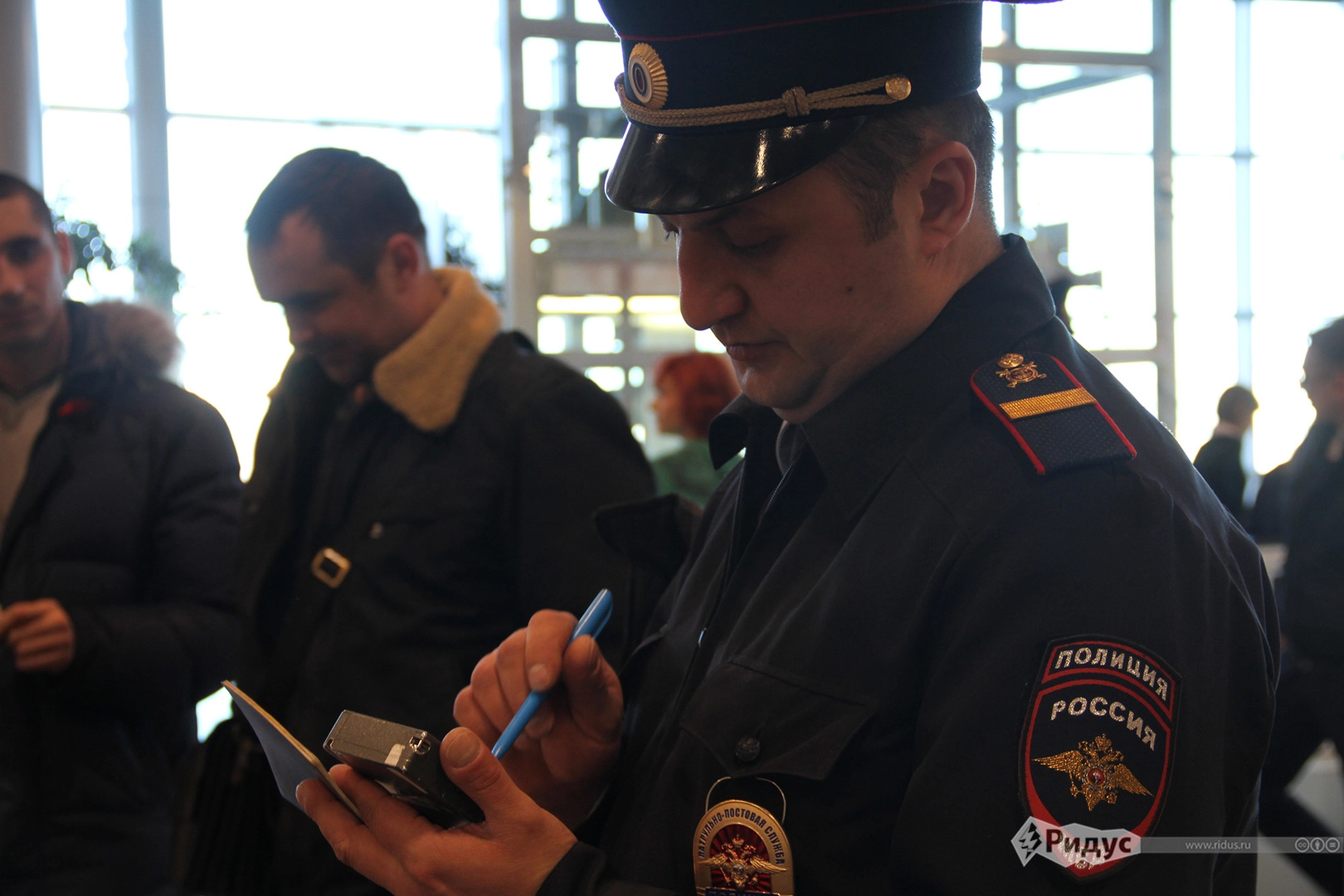 Как убедился корреспондент «Ридуса», большая часть работы правоохранителей скрыта от наших глаз. Утренняя экипировка, инструктаж, ориентировки. В 7:30 полиция аэропорта заступает на службу.