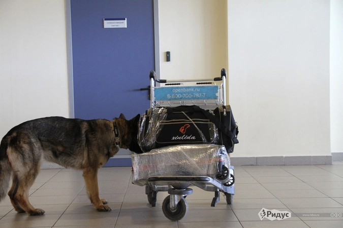 «Там мясо у меня», — сообщает кинологу хозяйка багажа.