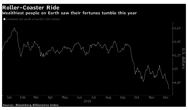 В результате совокупное состояние 500 богатейших людей мира сократилось в 2018 году на 511 млрд долларов, сообщает Bloomberg.