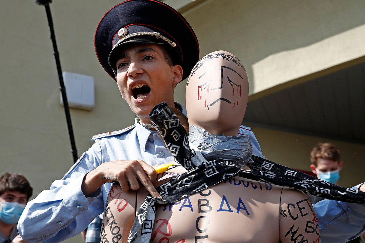 Подруга акциониста Анастасия Михайлова говорит, что Крисевич не пострадал, пистолет был заряжен холостыми патронами.
