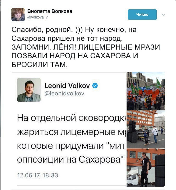 «Выход на Тверскую, где происходят массовые гуляния, в том числе пропутинских организаций, — несомненная провокация. Время ли и место для нее? Не убежден», — написал на своей странице в Facebook экс-глава ЮКОСа Михаил Ходорковский.