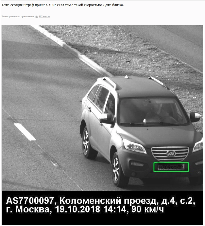 По их данным, камера выписывает штрафы по принципу «на кого бог пошлет» независимо от скорости, с которой движется автомобиль.