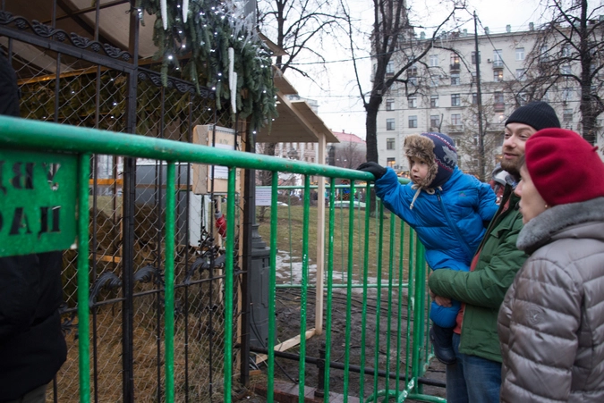 В первой половине декабря в Новопушкинском сквере открылась новогодняя ярмарка «Волшебный лес», в комплекс которой, для развлечения посетителей, входят инсталляции с участием живых, а подчас и диких зверей, среди которых: клетка с оленем, а также вольеры, в которых находятся коза с козлятами, овца, гуси, сова и петухи.