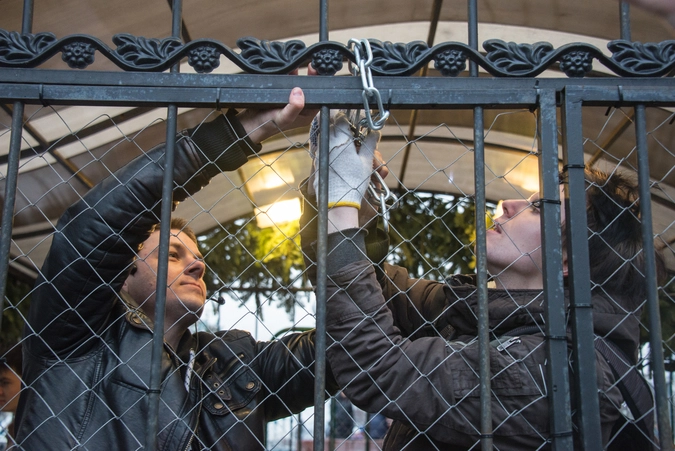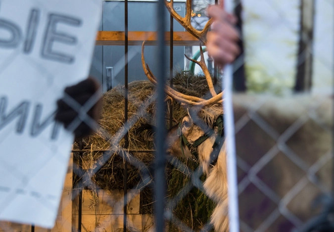 В итоге, не найдя отклика от городских властей, четверо активистов проникли в клетку к оленю Рудольфу, в которой провели более часа до тех пор, пока сотрудники полиции с помощью спецсредств не перекусили цепь с замком, которая сдерживала створки клетки.