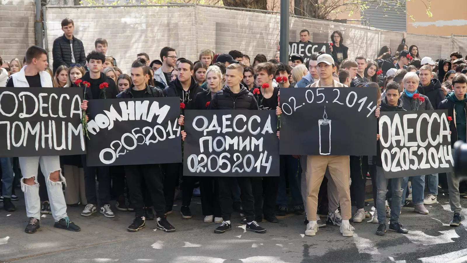 «Сегодня более двух тысяч наших активистов пришло к посольству Украины, чтобы почтить память невинно убитых людей в Одессе 2 мая 2014 года. Ежегодно с 2015 года мы проводим эту акцию. Семь лет мы приходим к посольствам и консульствам Украины, на центральных площадях городов выкладываем из свечек слово „Помним“ и возлагаем цветы. Мы обязательно будем добиваться того, чтобы все виновные в гибели 48 человек были наказаны».