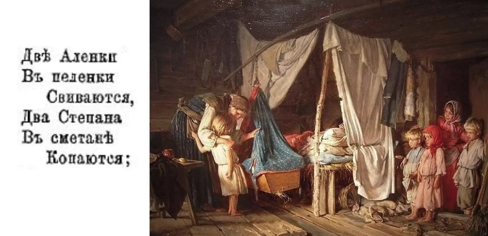 Это ведь явно описание многодетной семьи, «Аленки свиваются» — это спеленатые младенцы. Возможно, народное печенье, напоминающее кулек с ребенком, и впрямь у кого-то вызвало в памяти эту песенку. Наверное, так. Ведь что такое «Аленка в пеленке» — спеленали, положили рядышком, вот они и лежат.