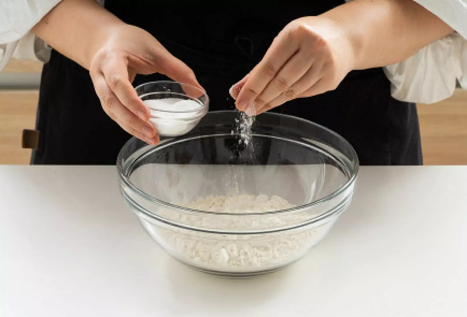 1. Смешать муку с солью.