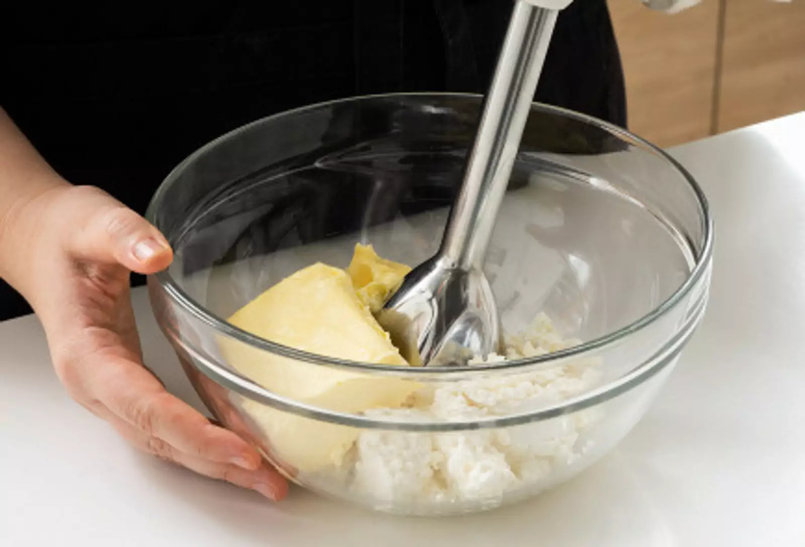 2. Масло комнатной температуры смешать с творогом до однородности.