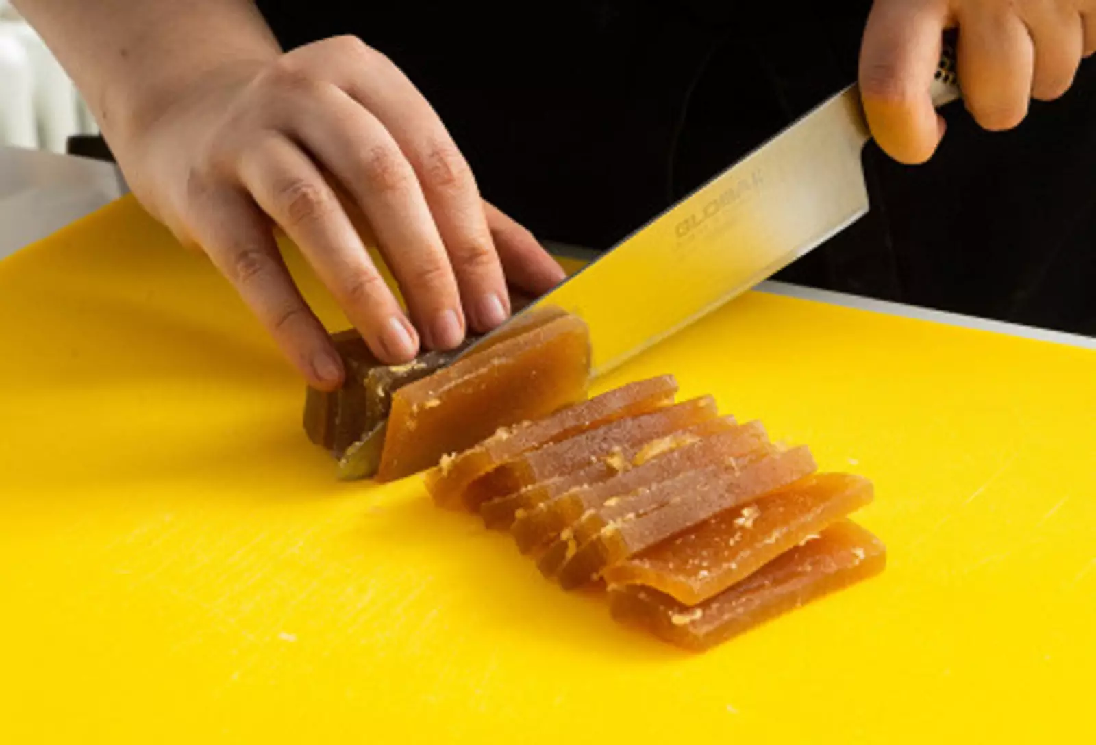 4. Нарезать мармелад брусочками по 3−4 сантиметра в длину и толщиной в полсантиметра.