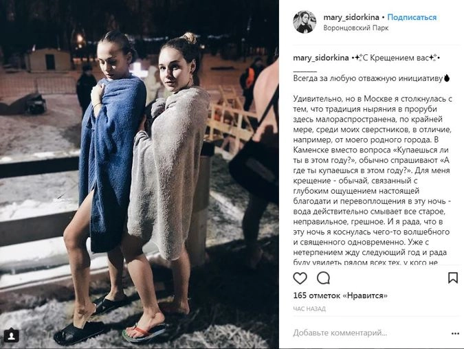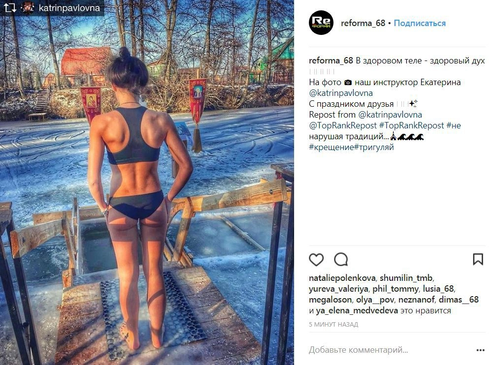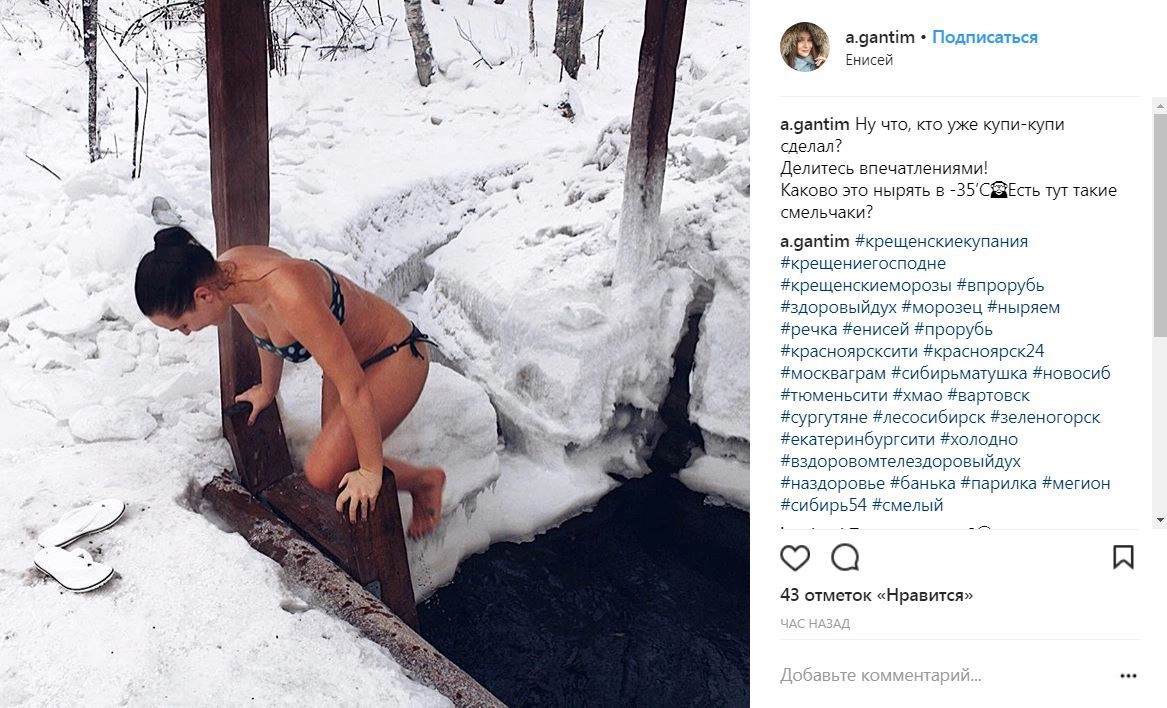 Если судить по Instagram, сегодня крещенские купания в проруби превратились в общероссийскую традицию, в которой участвуют не только крепкие мужчины, но и женщины, дети и даже мусульмане. А если судить по комментариям к снимкам, то в проруби россияне искали здоровья, красоты, удачи, счастья, «доброй энергии» и даже любви.