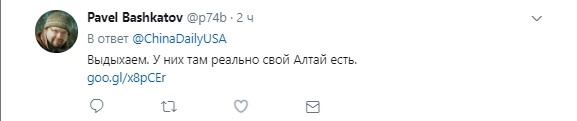 Позже выяснилось, что в Китае действительно есть «свой» Алтай — округ в Или-Казахском автономном округе Синьцзян-Уйгурского автономного района КНР.