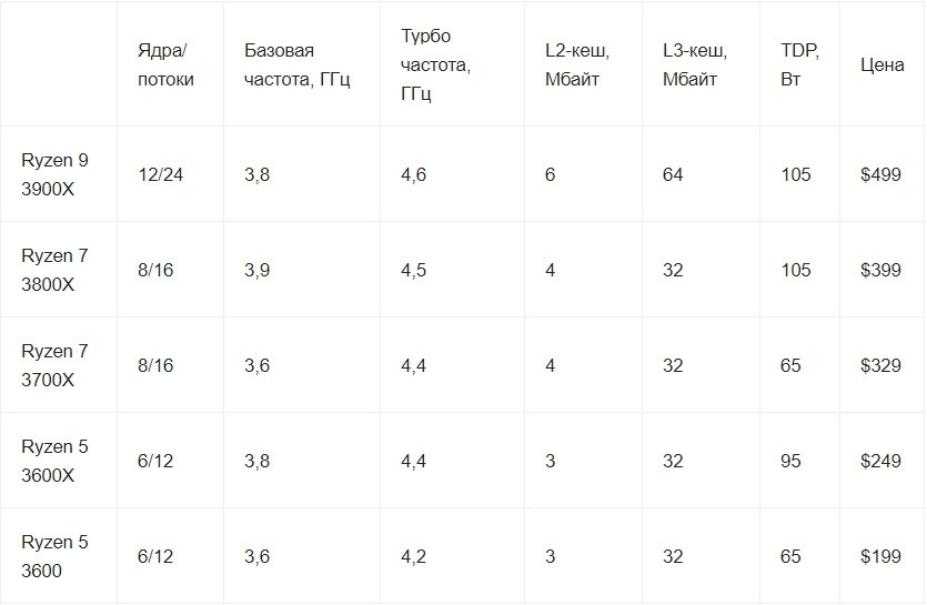 Замыкают линейку 500-долларовые Ryzen 9 с 12 ядрами, 24 потоками и тактовой частотой до 4,6 ГГц. Полный список моделей с характеристиками и ценами приведен ниже.