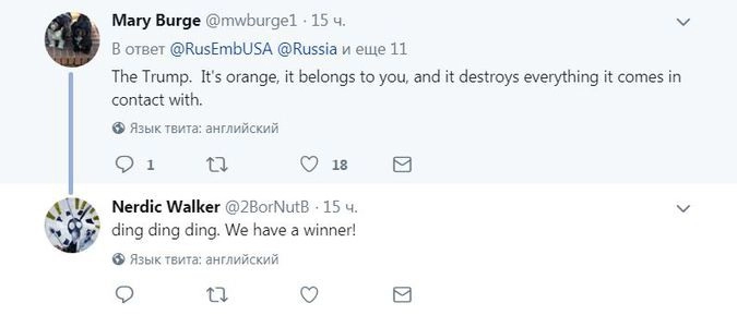 «Он оранжевый, принадлежит вам и разрушает все, с чем контактирует», — пояснила она свою мысль. Другие пользователи одобрили это предложение.