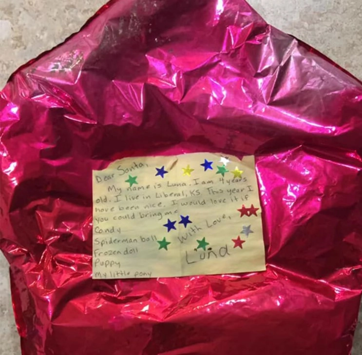 В декабре 4-летние сестры-близнецы Луна и Джанелла Гонсалес из Либерала (Канзас, США) выпустили воздушные шары в форме звезды с прикрепленными к ним списками желанных подарков на Рождество.