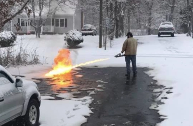 Американец почистил дорожку от снега огнеметом