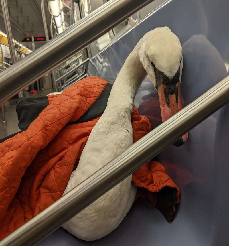 Спасительница завернула самку лебедя в куртку и, взяв в другую руку велосипед, пошла пешком через весь Нью-Йорк, чтобы принести пернатую в реабилитационный центр для диких птиц, где ее смогут осмотреть и подлечить.