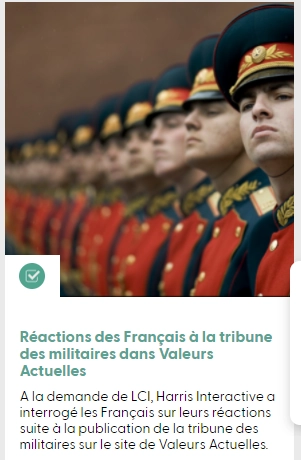Опрос об отношении французов к письму военных, в котором они заявили об опасности гражданской войны, было проиллюстрировано фотографией почетного караула Преображенского полка.