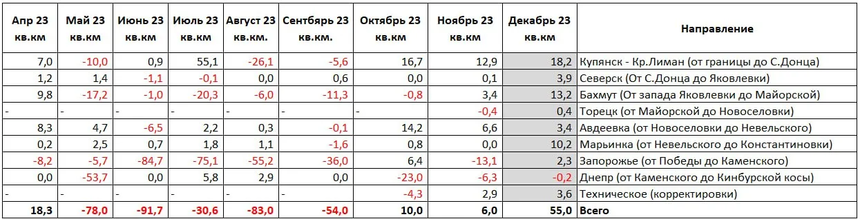 В конце 2023 года Россия прибавила 55 квадратных километров территорий в зоне проведения специальной военной операции. Такие данные получили авторы военно-аналитического портала Lost Armour, посвященного потерям военной техники в локальных конфликтах XX–XXI века.