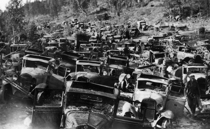 Советская автомобильная техника, брошенная и уничтоженная при отступлении в Карелии.