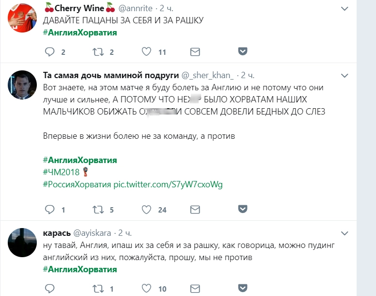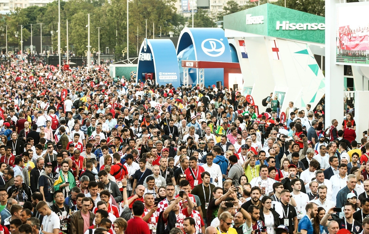 Болельщики сборных Англии и Хорватии мирно вместе проводили время перед матчем. Они начали распевать песни еще в метро, а позже исполняли песни в поддержку своих команд, сидя друг рядом с другом в барах около спортивного комплекса «Лужники». Англичан и хорватов возле стадиона примерное равенство, но балканские гости пели громче, отмечает ТАСС.