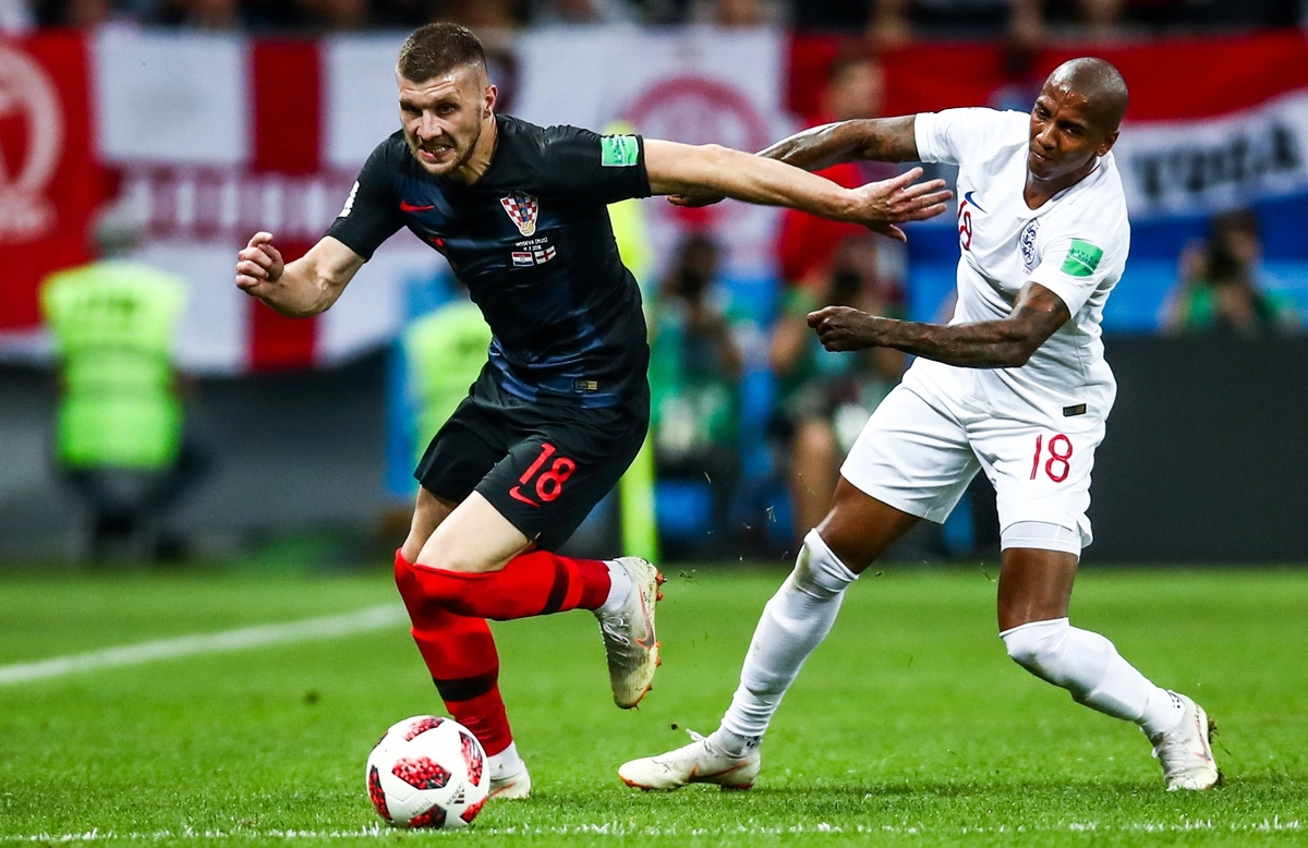 Игроки сборной Хорватии Анте Ребич и сборной Англии Эшли Янг (слева направо) .